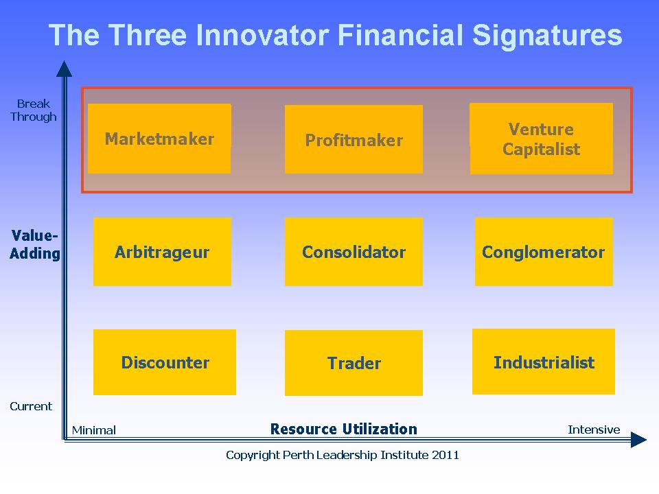 Perth has been conducting research on innovation in companies for over 10 years through its work on business acumen. This is because one of the two drivers of business acumen is the possession of a value-adding style, which is the same as an innovator style. Perth’s approach to innovation is that the innovators, who are essential to any innovation process, must be found first and then harnessed to the innovation objectives of the company.